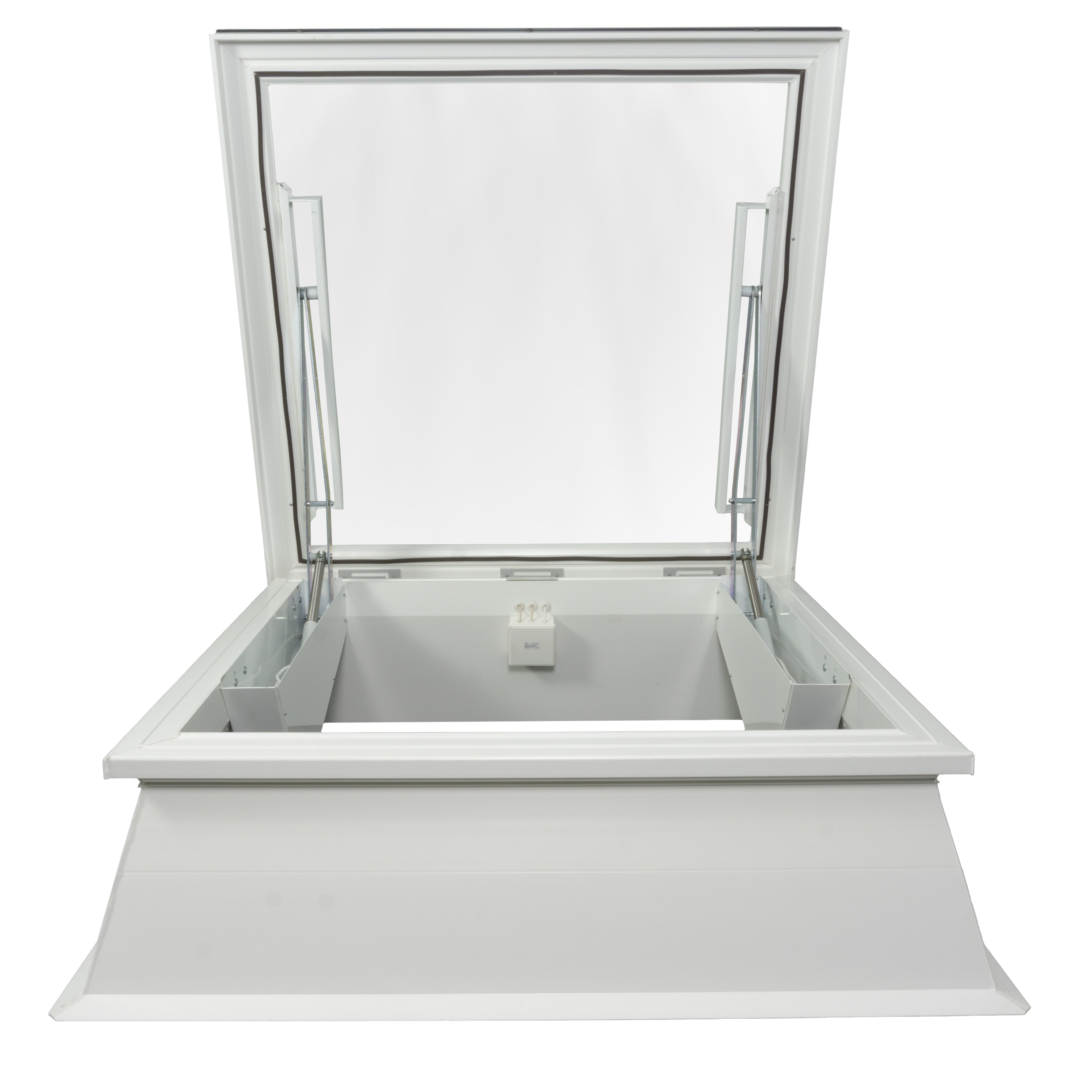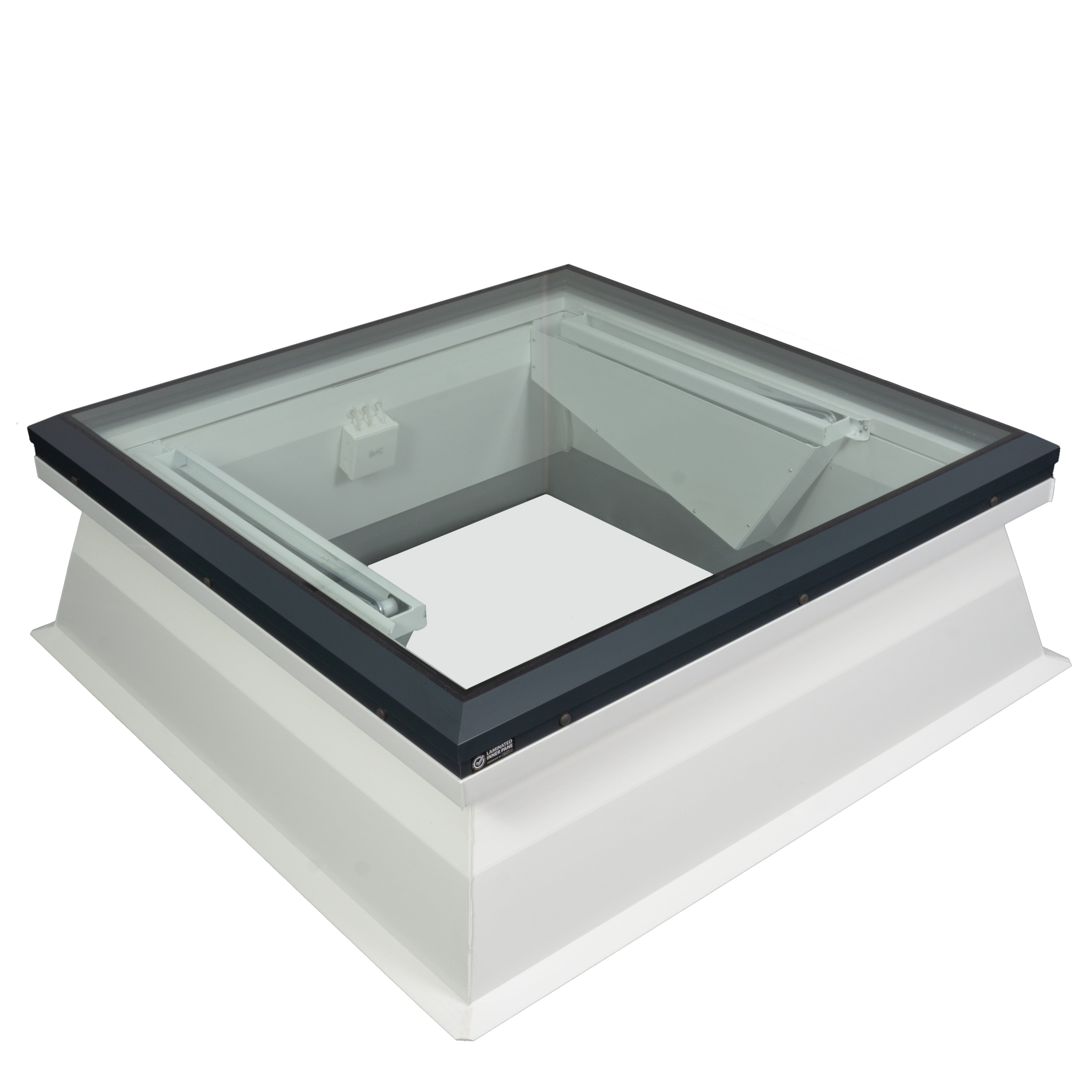 The versatile Flat Glass Rooflight range can be configured as a powered Access Hatch, providing safe, convenient access to roof areas for maintenance or to open up roof spaces for terraces and roof gardens. Each unit is supplied fully assembled and ready to install, complete with a PVC kerb, 24 V tandem actuators, and the option of a 230 V transformer, wind and rain sensor for enhanced functionality and weather protection.